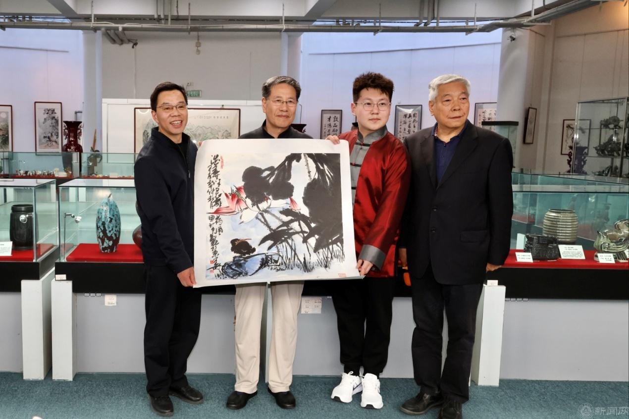 段辉建代表学校接受校友王元向母校转赠著名画家、文化部鉴赏专家张国祥的书法作品以及王元个人的美术作品。