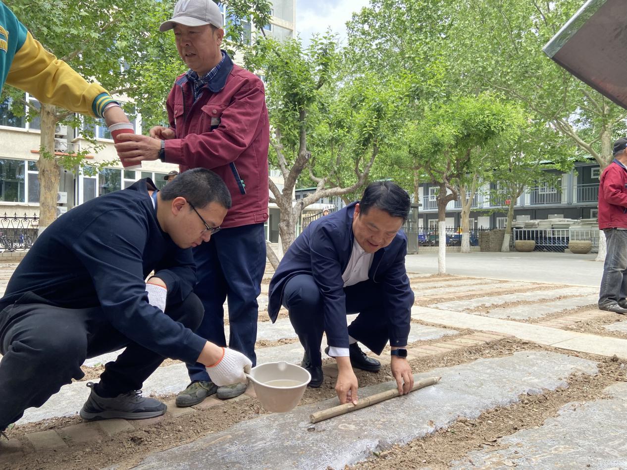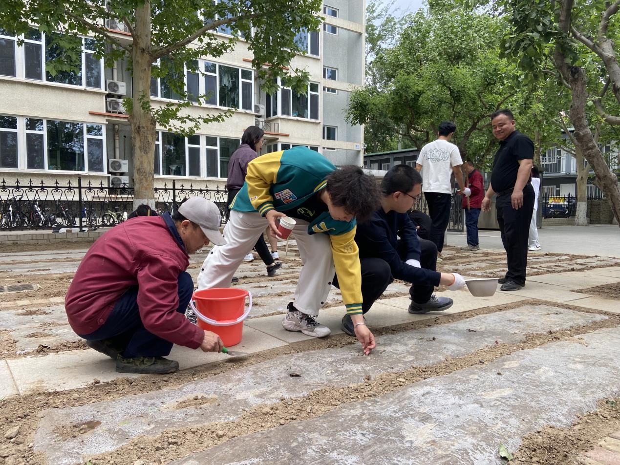 随后,师生们分组投入种植实践。绿化师傅详细讲解了播种和移栽的步骤,并现场示范。大家分工协作,完成了豆角、黄瓜的播种以及辣椒、西红柿秧苗的移栽。从挖沟、播种到浇水,每个步骤都凝聚着参与者的热情与专注。活动现场,师生们一边交流种植技巧,一边体验农耕乐趣,展现了浓厚的劳动氛围。