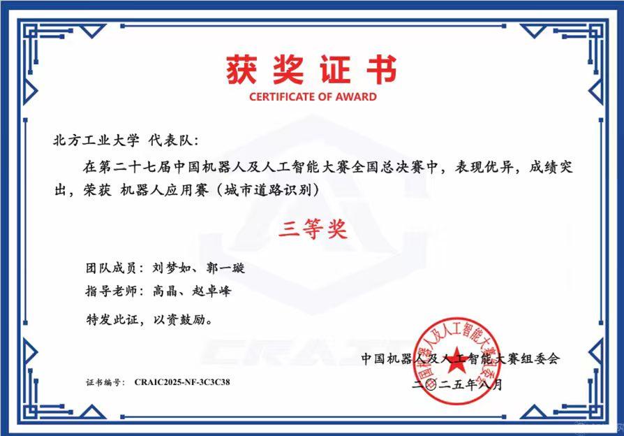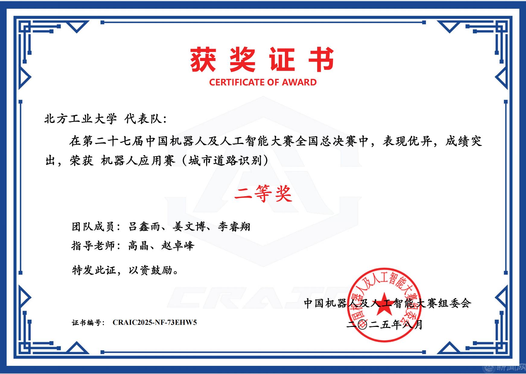 中国机器人及人工智能大赛是国内规模最大、影响力最广的机器人竞赛之一,旨在推动机器人及人工智能技术的创新与应用,为相关领域培养和选拔优秀人才。自1999年创办以来,已吸引全国超1000所高校、46万余人次参与。大赛已列入中国高等教育学会发布的全国普通高等学校学科竞赛排行榜、全国普通高校大学生竞赛分析报告。beat365人工智能与计算机学院人工智能专业自2022年参加中国机器人及人工智能大赛以来,累计获国家一等奖4项、二等奖3项、三等奖2项,北京赛区奖19项,参赛及获奖学生人数屡创新高,该赛事已成为beat365人工智能专业人才培养的有效平台。