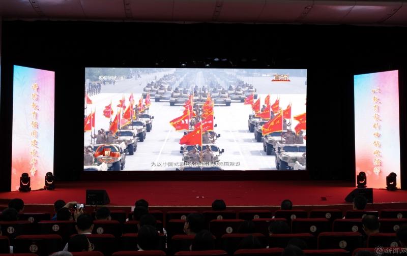 全体师生首先集体观看视频,学习习近平总书记在纪念中国人民抗日战争暨世界反法西斯战争胜利80周年大会上的重要讲话,回顾9.3阅兵的盛大场面。参与服务保障纪念大会的志愿者带队教师王子甲和学生志愿者李梦凡分别以《强国有我,贡献青春力量》和《这一刻,值得!》,分享了工作感悟,展现了师生心有大我、至诚报国的使命担当。