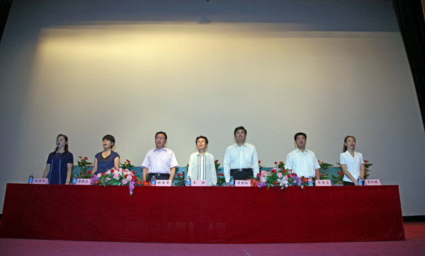 开学典礼以“铭记历史 共筑梦想”为主题,附属学校高年级学生以赠送书籍和寄语贴的方式举行了迎新生仪式。附属学校新生代表在会上做了发言,表达了努力学习、报效祖国的决心。随后,师生代表共同表演了诗朗诵《满江红》、《铭记历史》、快板《社会主义核心价值观引领我成长》等文艺节目,以此纪念中国人民抗战胜利暨世界反法西斯战争胜利70周年。