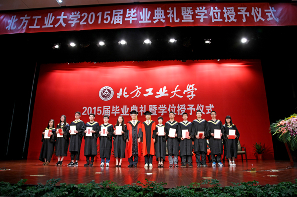 机11-1班罗琳同学代表2015届毕业生发言,她向母校、老师表达了衷心的感谢,并表示要牢记母校“敦品励学,才德并懋”的校训,做一个胸怀大志并脚踏实地的北方工大人,做一个富有责任而敢于担当的北方工大人。