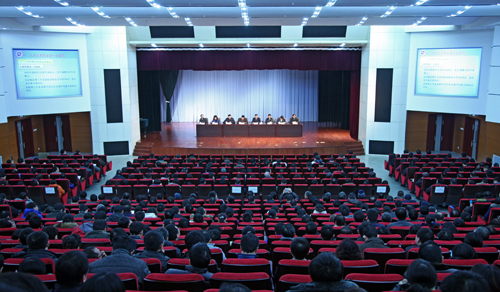 2月28日上午,学校在图书信息楼报告厅召开全校教职工大会。校党委书记谢辉主持大会,校长王晓纯作工作报告,全体在校校领导出席会议。