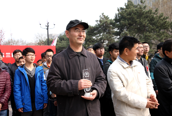 机械与材料工程学院的胡福文老师,郑重从谢辉书记手中接过“玉兰新闻人物奖”的奖牌,这块奖牌对他来说分量颇重。