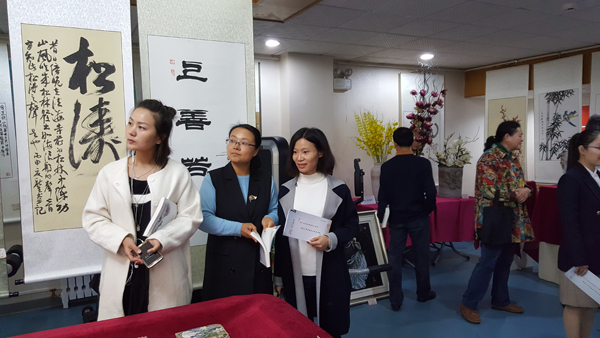 beat365官方网站书画协会副会长、图书馆副馆长隋俊宇在揭幕仪式上发言,感谢学校党政及校工会对书画协会的关怀与支持,并表示继续把书画协会工作推向深入,以便更好地为书画爱好者及广大师生服务。书画协会会员、文法学院英语系教师陈文芳作为书画爱好者在揭幕仪式上发言,感谢学校对教职工书画协会的重视,使教职工的业余文化生活得以丰富多彩,并表示要与广大书画爱好者一道用手中的画笔描绘北方工大的美丽明天。
