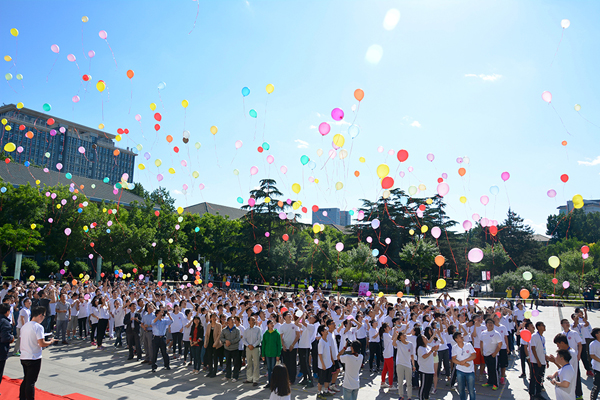 现场师生放飞气球