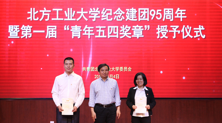 校党委书记谢辉、校长郑文堂分别为获得第一届“青年五四奖章”的个人和集体授予“青年五四奖章”。