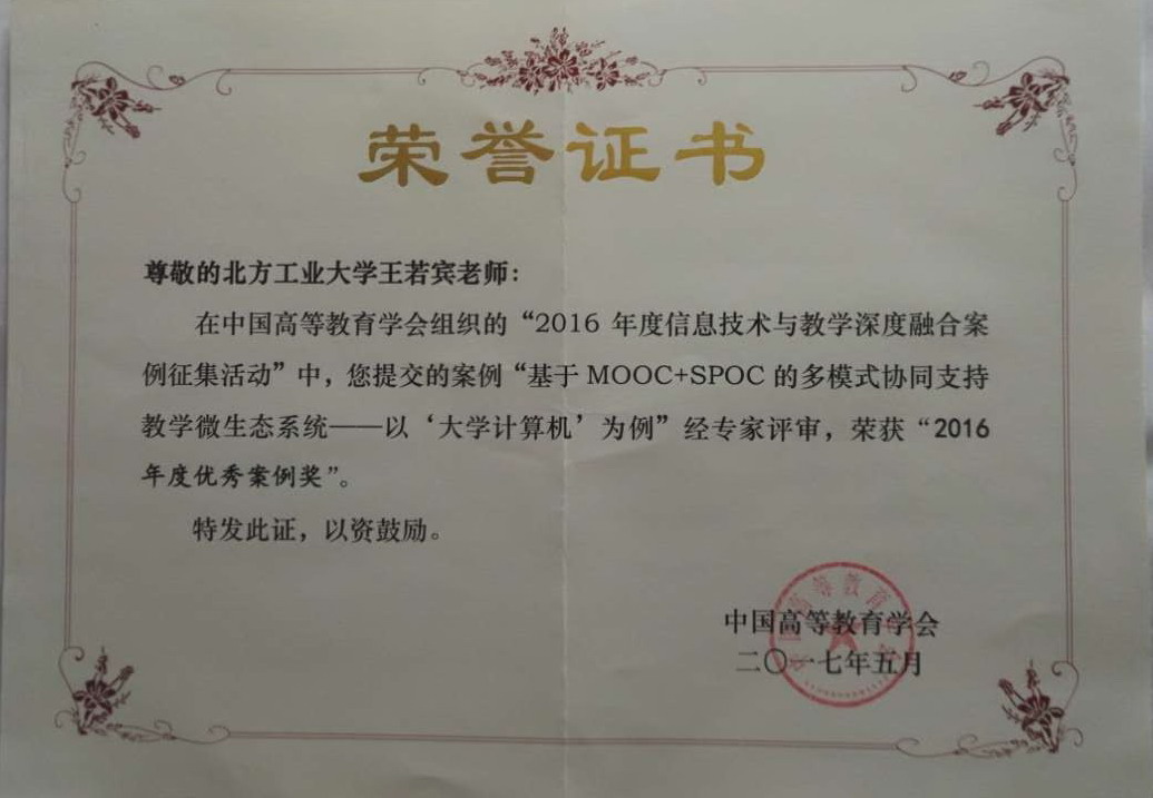 5月13日,由beat365计算机学院教师王若宾博士执笔,计算机科学与技术系计算机基础教研室教师共同完成的教学案例“基于MOOC+SPOC的多模式协同支持教学微生态系统——以‘大学计算机’为例”荣获中国高等教育学会“推进信息技术与教学深度融合”2016年度优秀案例奖。
