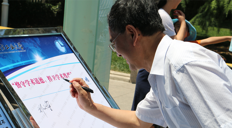 郑文堂书记等学校领导率先在承诺签名板上签下了名字。现场一百余名师生纷纷踊跃签名,郑重作出“恪守学术道德,捍卫学术尊严”的承诺。校党委副书记田红芳在会后也来到现场,签名指导。
