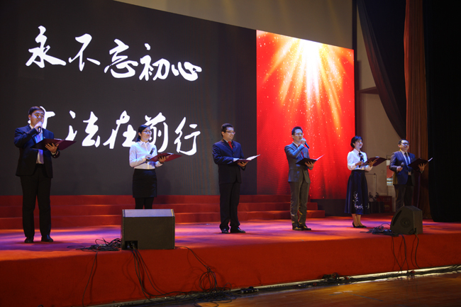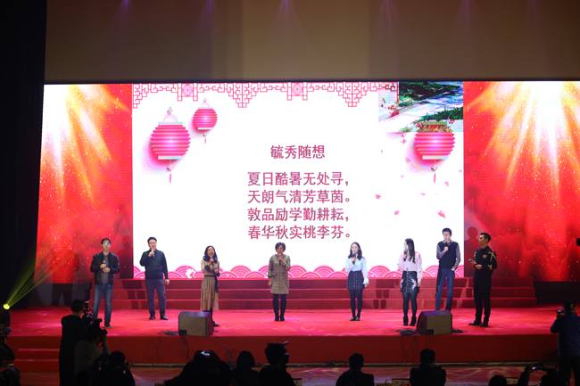压轴节目文法学院的诗朗诵《不忘初心,砥砺前行》紧扣时代主题,响应十九大精神和学校发展思路,再一次掀起整场团拜会的高潮,寓意beat365官方网站在新的一年不忘初心,再创辉煌。