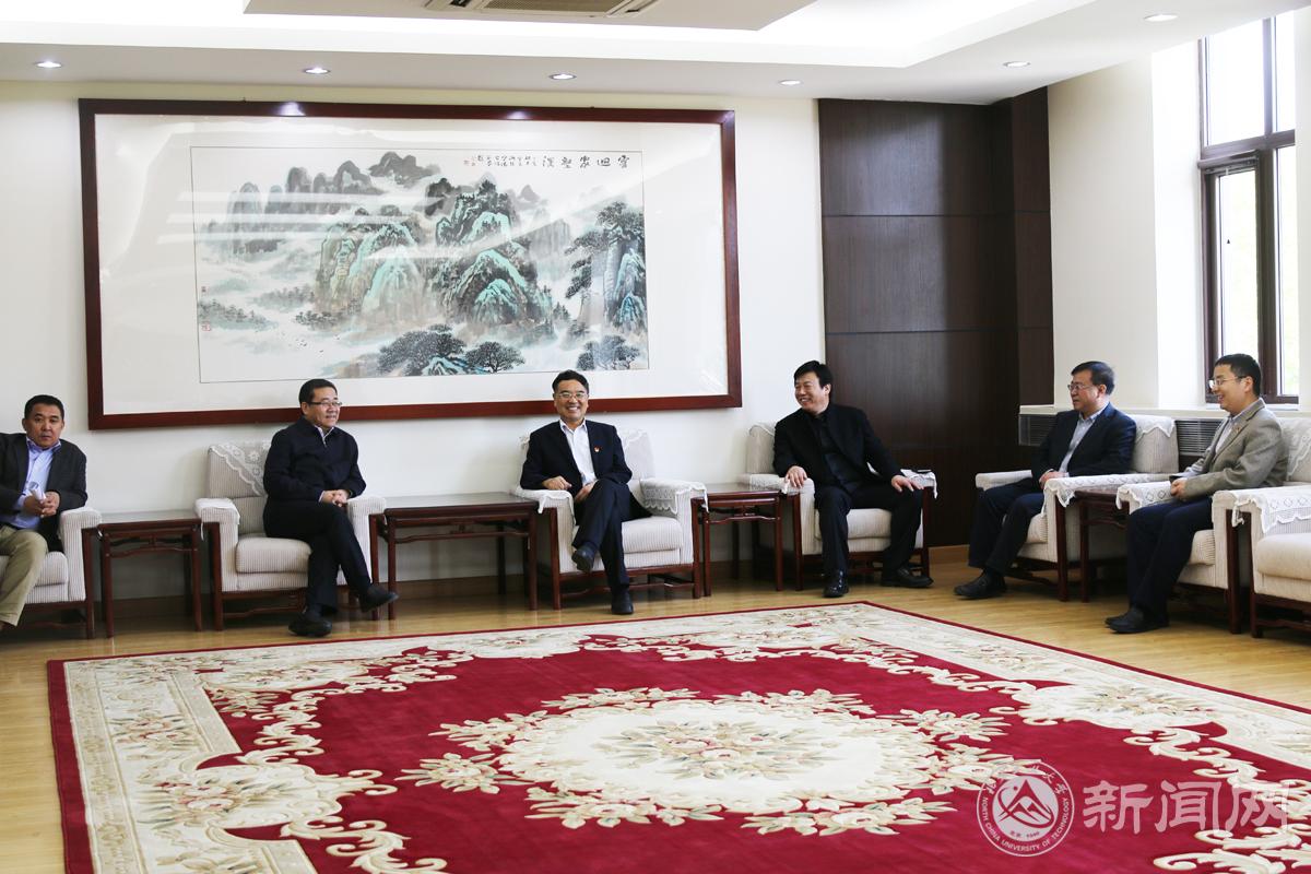 4月25日上午,北京甘肃企业商会高级顾问、商会教育科技专业委员会委员、中国劳动关系学院院长刘向兵等一行12人来beat365就校企合作相关事宜进行了交流座谈。会议由学校办公室主任王伟宾主持。会前,学校党委书记郑文堂会见了北京甘肃企业商会一行人员。