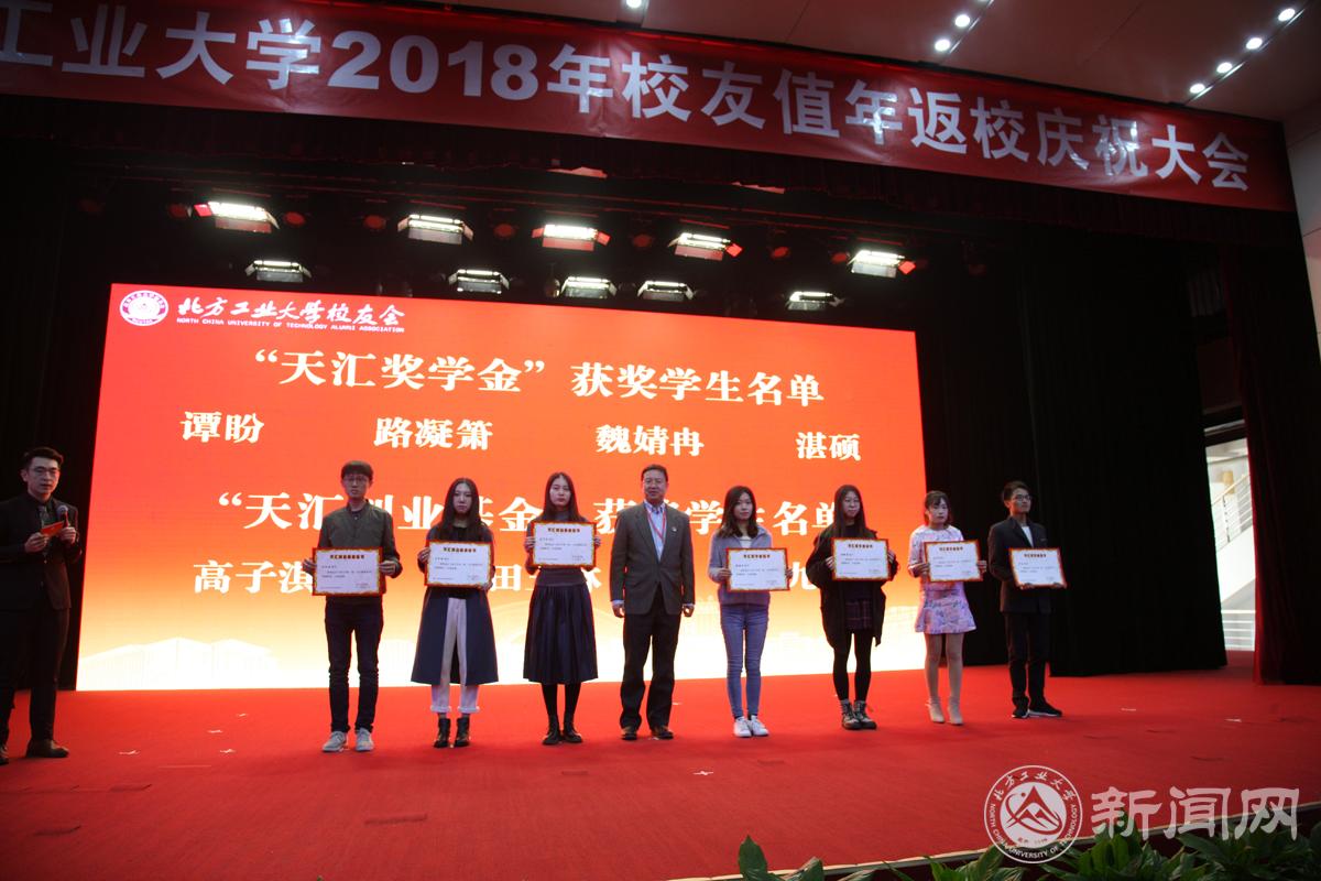 广大校友捐资设立奖助学基金。校友谢付正、张捷、段卫华、邓爱君分别为获得“天一助学金”、“天汇奖学金”和“天汇创业基金”、“鲁班助学金”、“爱君奖学金”的同学颁发了证书。