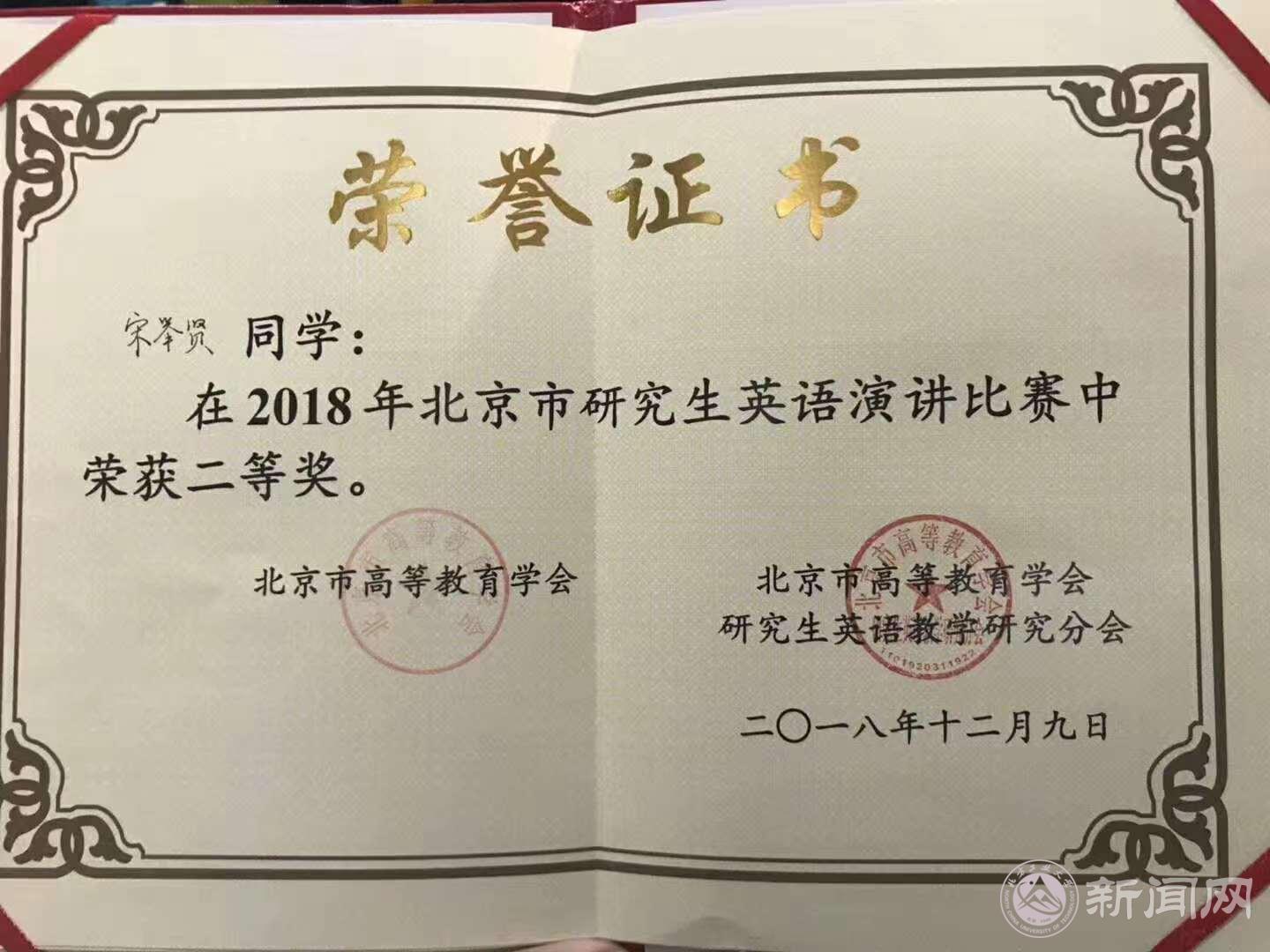 在近日举行的2018年北京市研究生英语演讲比赛中,beat3652018级研究生Ba2班宋举贤同学经过初赛、复赛的激烈选拔,以优异成绩成功晋级決赛,与来自北京大学、清华大学、北京师范大学、中国科学院大学等十余所高校的优秀选手角逐,最终获得北京市研究生英语演讲比赛二等奖。