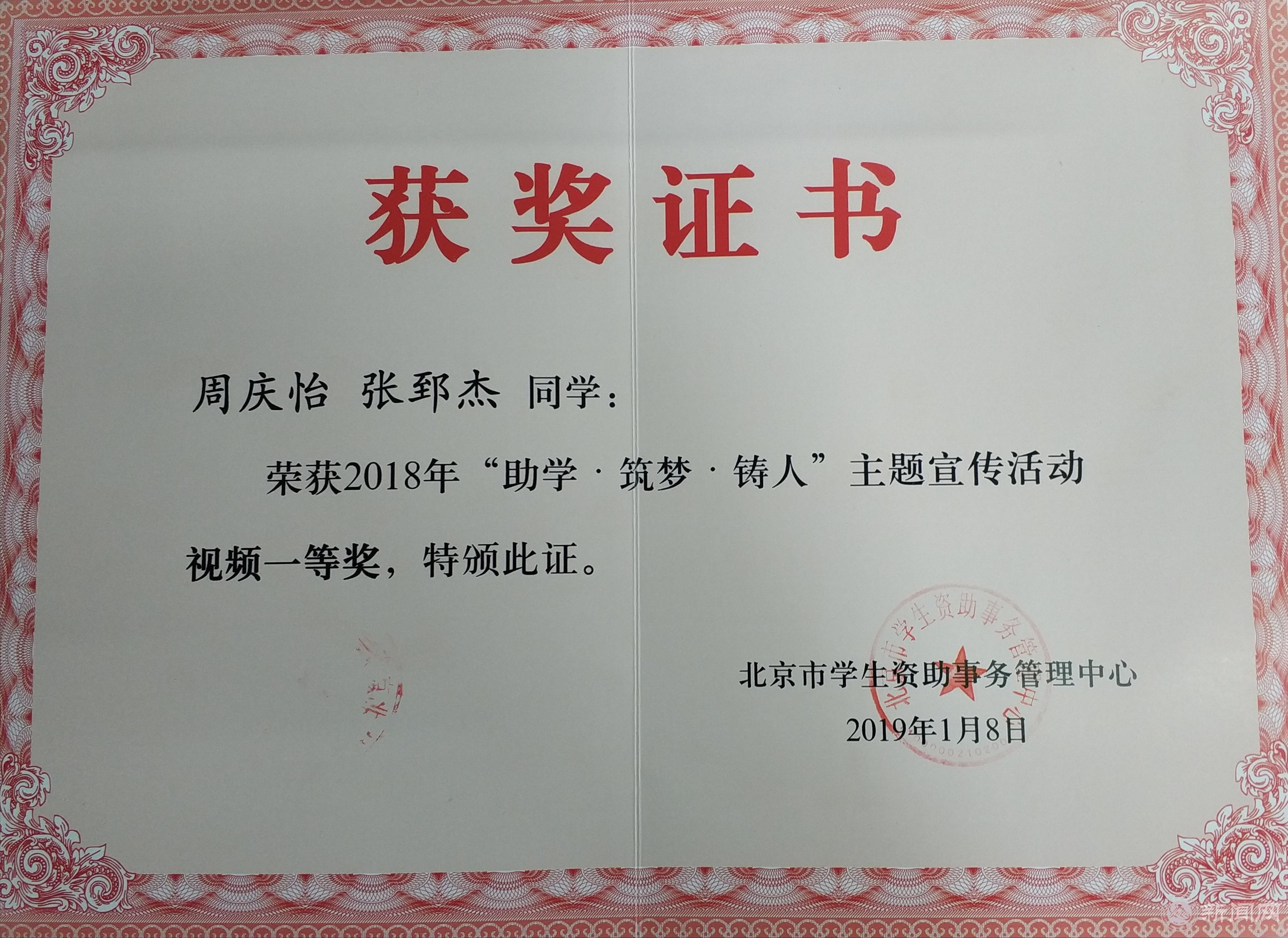 日前获悉,在第五届“助学•筑梦•铸人”主题宣传活动中,beat365文法学院英语17-1班周庆怡、日语17-1班张郅杰的作品荣获本次活动北京地区视频一等奖,且为beat365视频类参赛作品中唯一获奖作品。