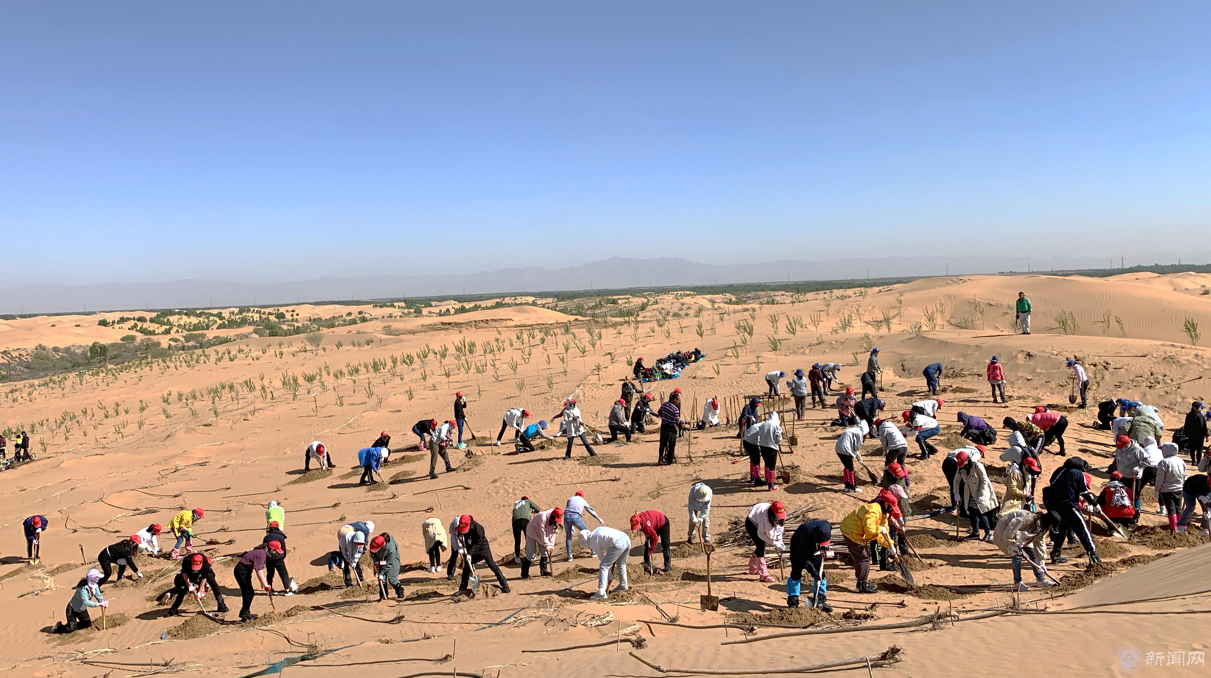 4月30日至5月1日,中日双方的志愿者们团结合作、共同植树,为沙漠的绿化作了出自己的贡献,同时也在汗水中增进了彼此的友谊,两天共植树1600余株。
