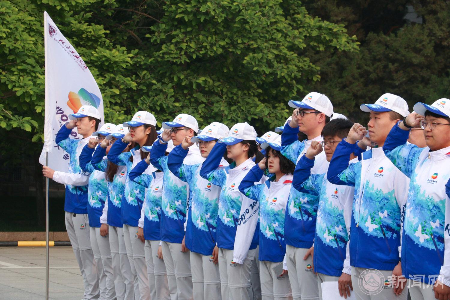 “我志愿加入北京世园会志愿者行列。我将:尽己所能,坚守岗位;服从安排,听从调遣;协作求同,播洒热情;奉献真诚,严谨细致,为世园会提供最好的服务,展现北方工大学生风采”。在国旗下,志愿者们庄严宣誓,将以实际行动向祖国向学校承诺,以北方工大学生的奉献精神、专业能力和忘我的态度服务我们的国家,展现当代中国青年的责任和担当。