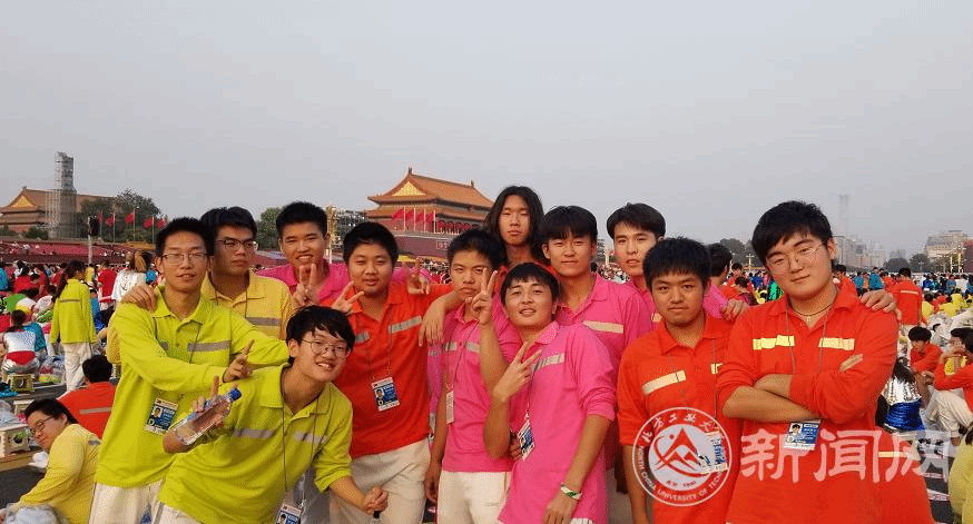 天安门广场的群众联欢活动中,位于人民大会堂北侧的“健康中国”主题板块,有来自北方工大的1100多名师生参与其中。