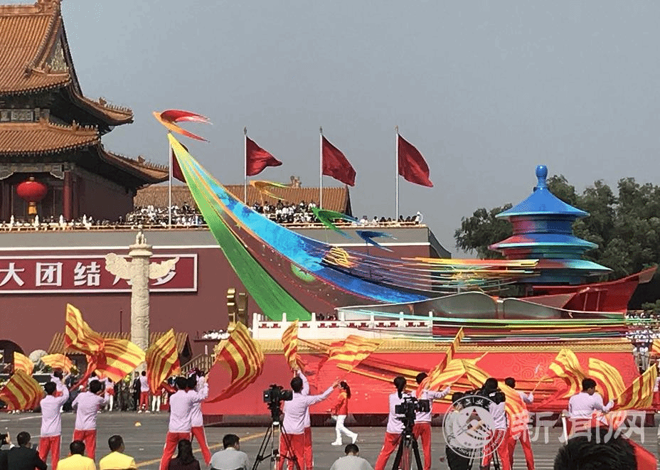 整个方阵通过天安门广场的时长8分多钟,是游行方阵中时间最长、彩车最多的。在各地方彩车通过广场的同时,由北方工大330名师生组成的旗阵分列长安街南北两侧,以挥舞彩旗、跳啦啦操的形式配合彩车展示。