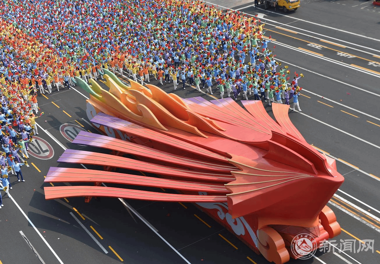 师生们在通过天安门广场的那一刻,习近平总书记一直向我们挥手致意,大家心情万分激动,把内心对祖国最深沉的爱以最真挚、最热烈、最欢愉的方式表达出来了,向全世界展示出中华儿女的自信豪迈、幸福美满,展示出当代中国大学生的青春风采。
