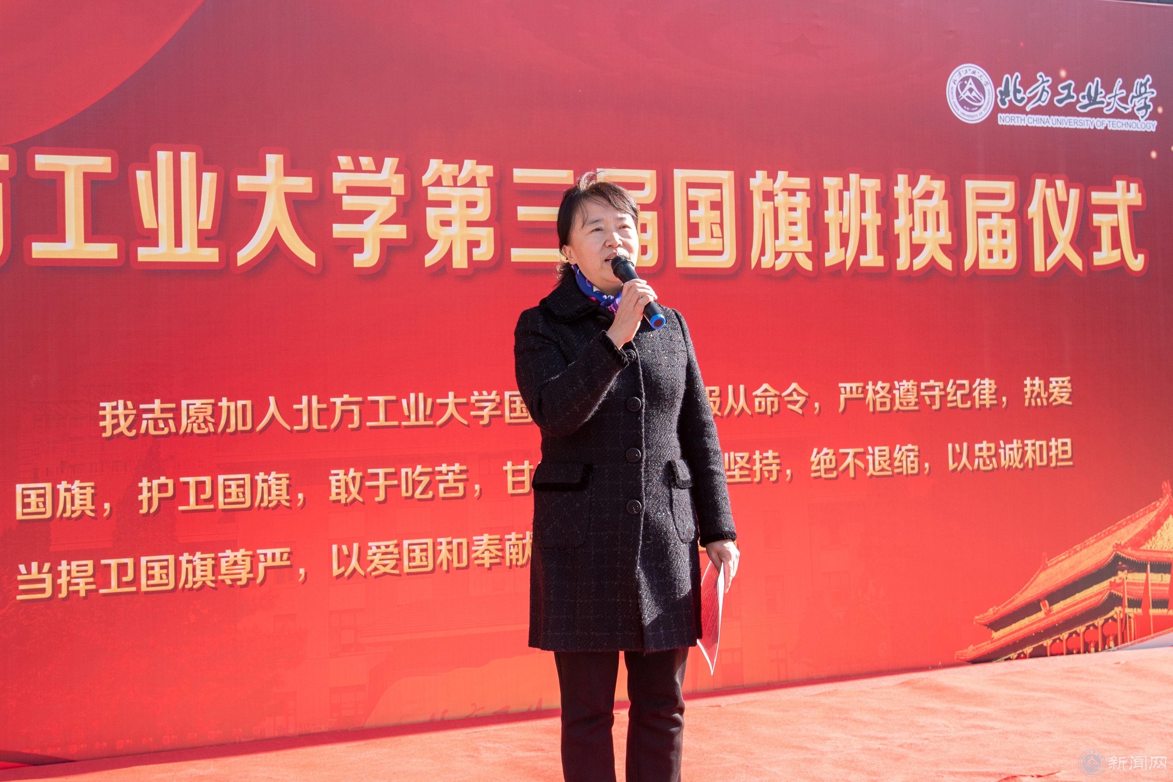 田红芳副书记在仪式上讲话。她指出,国旗班队员是北方工大校园里离国旗最近的人,队员们迎酷暑、斗严寒,以崇高的爱国热情、吃苦耐劳的精神、严于律己的品质赢得了校内师生的一致好评。升国旗活动已成为beat365爱国主义教育、集体主义教育、革命主义教育的重要载体。爱国主义是中华民族最重要的精神财富,她希望新一届国旗班成员再接再厉,牢记使命、勇于担当、践行责任、刻苦训练,将“爱国、爱旗、爱校”精神融入日常学习生活中,用实际行动感染身边的同学,涵养校园文化。她强调,全体北方工大师生都要有一颗爱国、报国的心,广大师生要将爱国和爱党、爱社会主义有机统一起来。让爱国主义精神成为每名北方工大人的坚定信念和精神依靠。