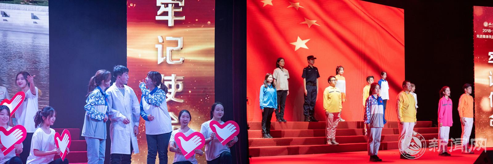 全场师生的爱国热情融入《歌唱祖国》的激昂歌声中,爱国、报国、强国的热切情感在每位师生的胸中激荡。主题视频《不忘初心,牢记使命,我与祖国共奋进》全面展现了2019年学校在服务保障国家重大活动、人才培养、学风建设、学科建设、重大竞赛、国际化办学等方面的成就,展现了北方工大人以实际行动奉献国家、服务首都的奋进姿态。
