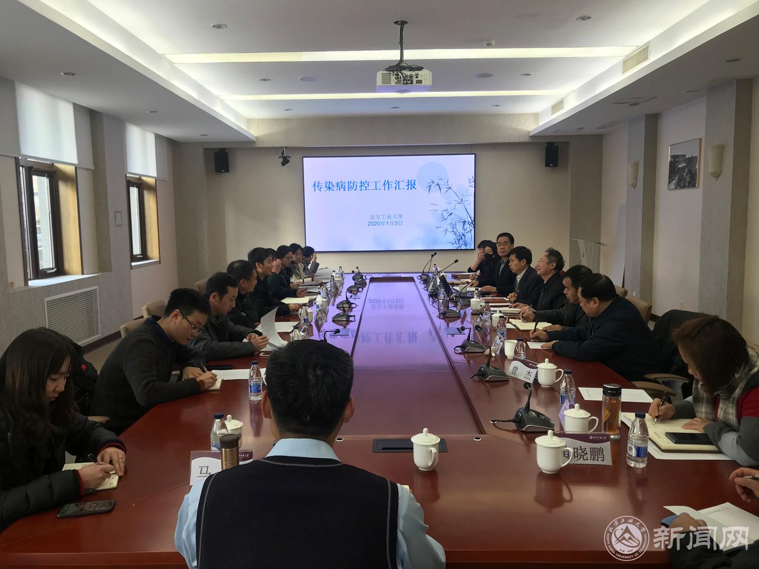 1月3日上午,传染病防控专家组一行莅临beat365开展冬季传染病防控情况检查工作。专家组由北京市教委体卫艺处处长凌长龙、北京市卫健委疾控处副处长纪晋文、北京市教委后勤处处长于杰、北京市教委体卫艺处主任刘梦龙、北京市疾控中心传染病地方病防制所主管医师王小莉、北京市疾控中心消毒与病媒生物防制所副主任包卫华、石景山区卫健委副主任杨纪峰、石景山区疾控流病科科长白云、石景山区卫健委疾控科科长刘丽娜9名专家组成。副校长胡应平主持了传染病防控工作汇报会,后勤基建处、服务中心、学工部等部门负责人参加了汇报会。