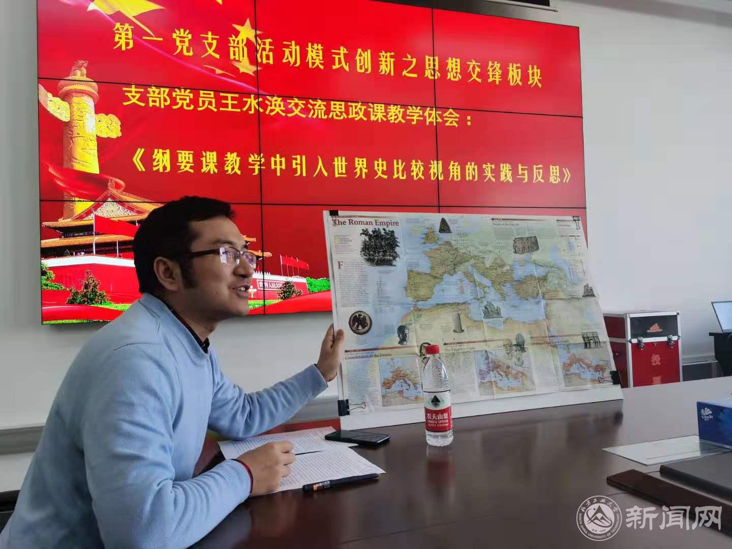 结合学习活动,支部开展了新一期创新学习活动,王水涣同志做了题为《纲要课教学中引入世界史比较视角的实践与反思》的主旨发言,分享了个人在思政课教学改革实践中的新做法和新思考。