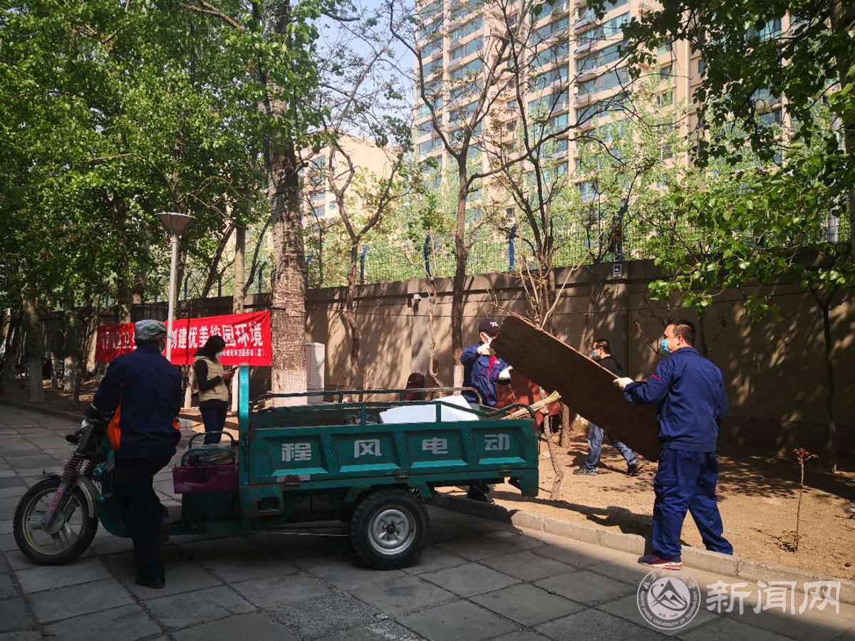 对于学生公寓全范围、教学实验楼宇顶部及周边、校园绿地及卫生死角盲区进行了重点清理,捡拾烟头及杂物,由“清脏”向“治乱”拓展,全面深入提升校园环境卫生水平。在家属区开展卫生大扫除活动,重点对家属15、16号楼北侧绿地杂物进行清理,及时清运绿地内无主物及各种垃圾,清理渣土,截止目前对校园内226个行道树池、351个雨篦子进行了清掏,为师生、家属创造了宜居、舒适的居住环境。