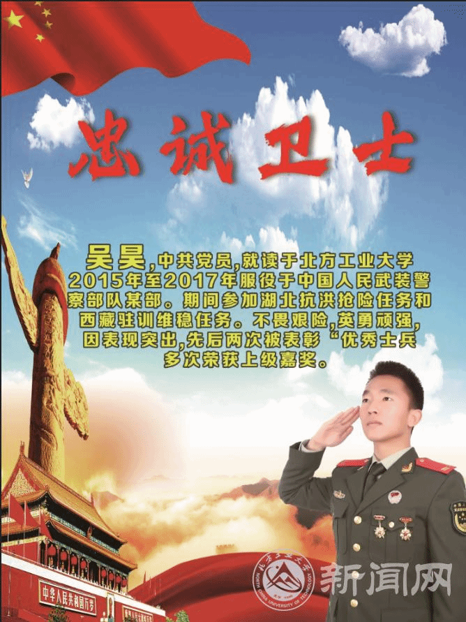 吴昊同学是从64所高校推荐的80名在校退役大学生士兵选拔而出的30名优秀代表之一。历经市校两级视频评选、资格审核、述优答辩、专家评审等环节脱颖而出。吴昊同学在服役期间参加过湖北抗洪抢险、西藏驻训维稳等任务,因不畏艰险,英雄顽强,先后两次被评为“优秀士兵”,多次荣获上级嘉奖。退役复学后,坚持将在军队里养成的好作风、好习惯带到日常学习中,学习刻苦认真,积极参加国庆70周年庆祝活动。先后获得校级一、二等学习奖学金,“国庆 70 周年游行活动”优秀教官、beat365官方网站优秀队长等荣誉。