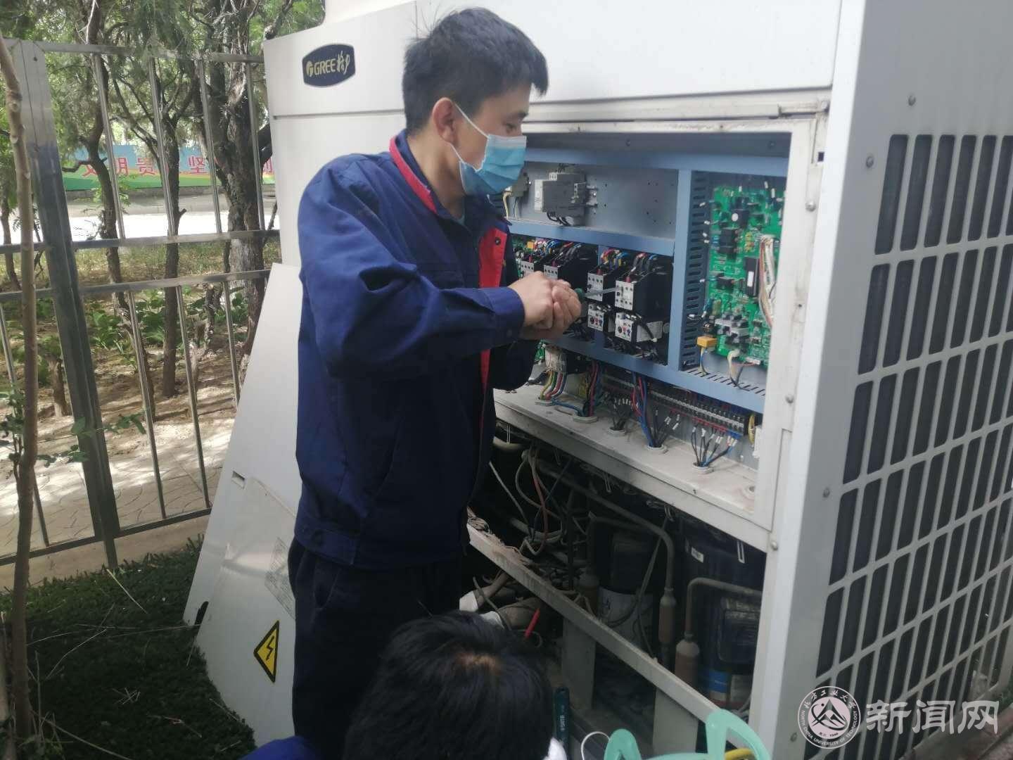 排除故障,检修设施。集中检查公寓区及教学区设备设施,对故障设备设施及时修缮。描新学校标识标牌、全新粉刷校园主要道路标识线及停车位线,对路灯及路面石材进行维修;对浴室喷头进行集中拆卸清洗除垢消毒处理;对校内100余台开水器、净水机组水箱进行全面冲洗及消毒,更换滤芯;每周对开水器及其净水设备进行一次检修,对开水器水质进行抽样检测,检测结果全部合格;对二次供水设备进行清洗消毒,确保水质合格;对公寓内空调、中央空调及循环水泵进行清洗维修保养,并由专业检测机构出具检测报告,均检测合格;按照《北京市集中空调通风系统卫生管理办法》要求,关闭中央空调回风系统,采用全新风运行模式。