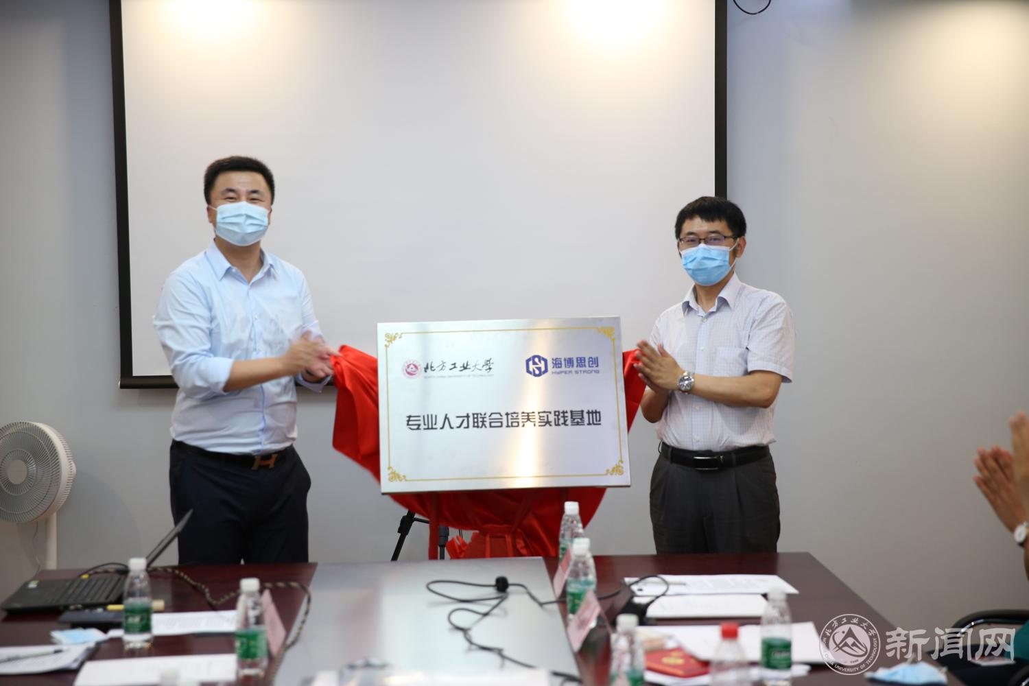 随后,柳长安副校长与张剑辉董事长共同为人才联合培养基地进行了揭牌。