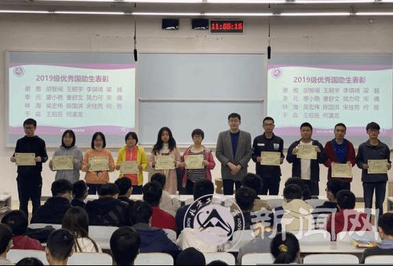 学院党委副书记赵帅为2019-2020年优秀国助生代表颁发奖状。