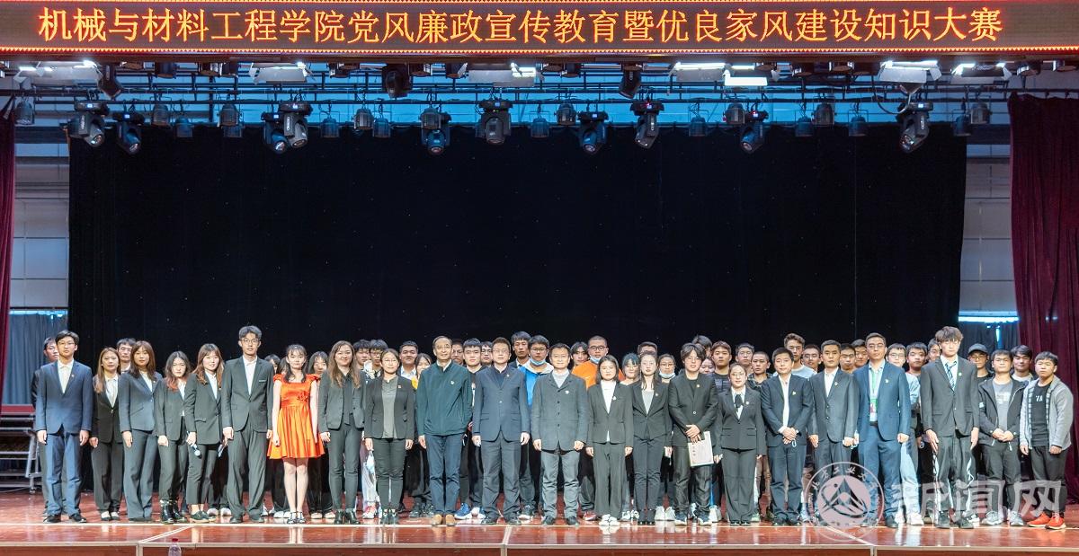 11月12日下午,机械与材料工程学院党风廉政宣传教育暨优良家风建设知识大赛在学生多功能厅举办。全院师生党员、入党积极分子、学生代表近400人一同观看了知识大赛。