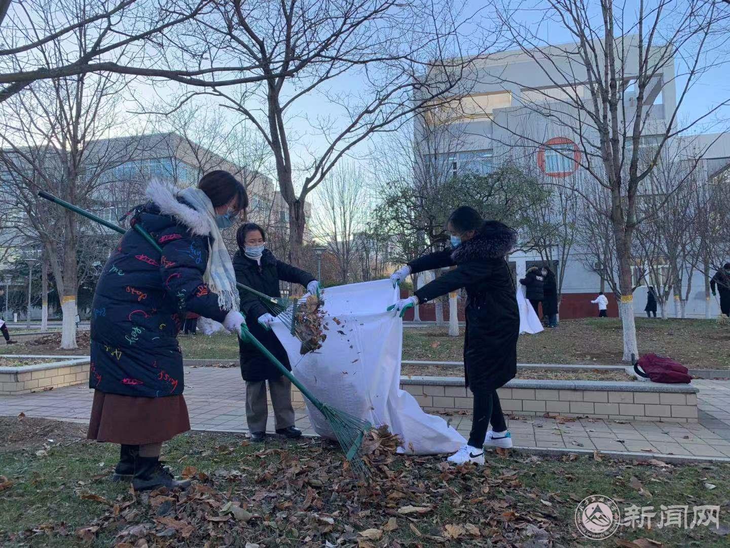 大雪已至,落叶增多,为进一步增强学生的环保意识,发挥学生参与绿化美化校园的积极作用,促进学生德智体美劳全面发展,近日,服务中心与文法学院持续开展“美丽校园,从我做起”环境清洁活动。