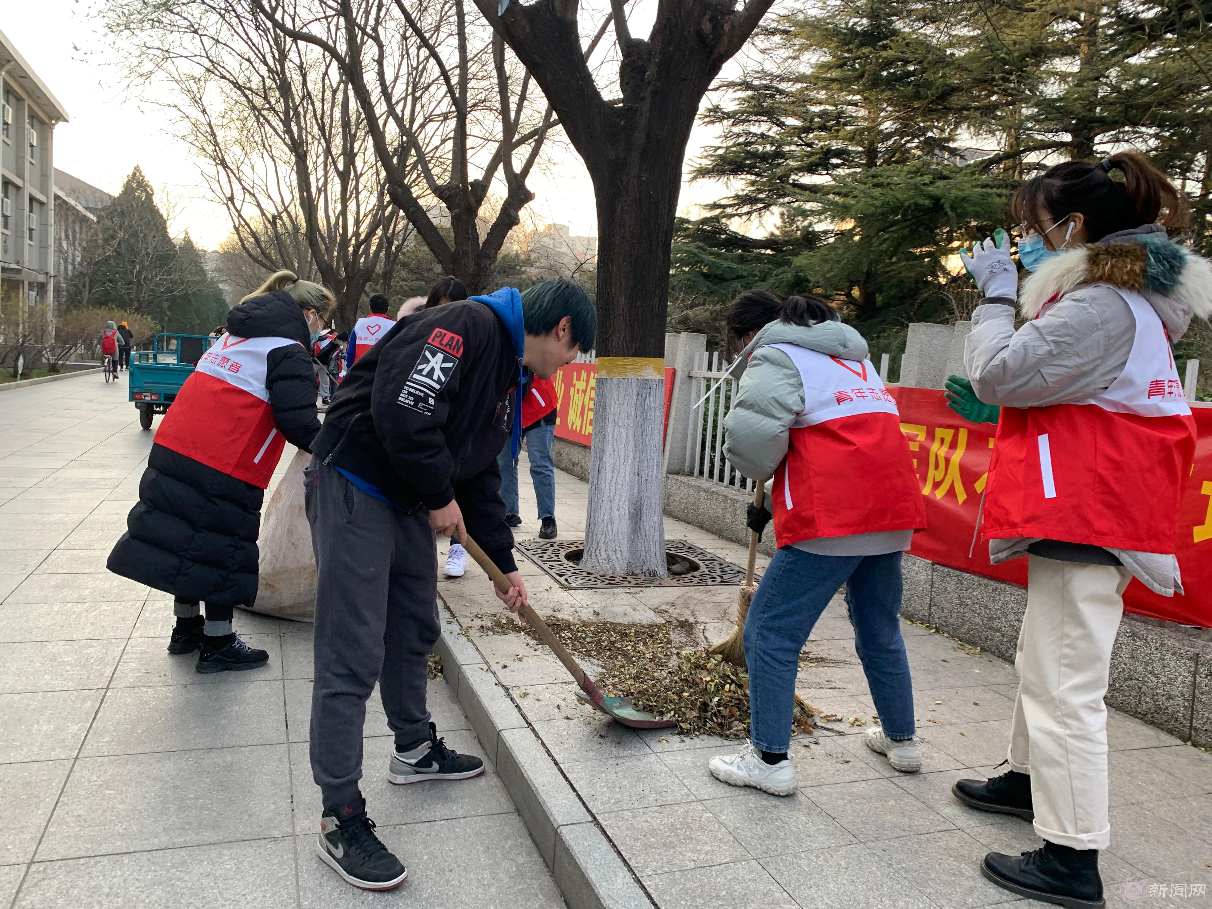 绿化环卫服务部员工与文法学院30余名学生分两批集中对灵秀园、国槐路区域进行了校园落叶清理。动作娴熟的师傅们首先给同学们做了示范,并提醒大家在劳动中要注意安全,做好相互协调配合。同学们按照分组有序展开了劳动,用自己的双手亲自参与到校园环境的清洁美化活动中。经过一个多小时的认真清理,使美丽校园更加洁净靓丽。同学们用自己的行动践行了“青年志愿者”的奉献精神。