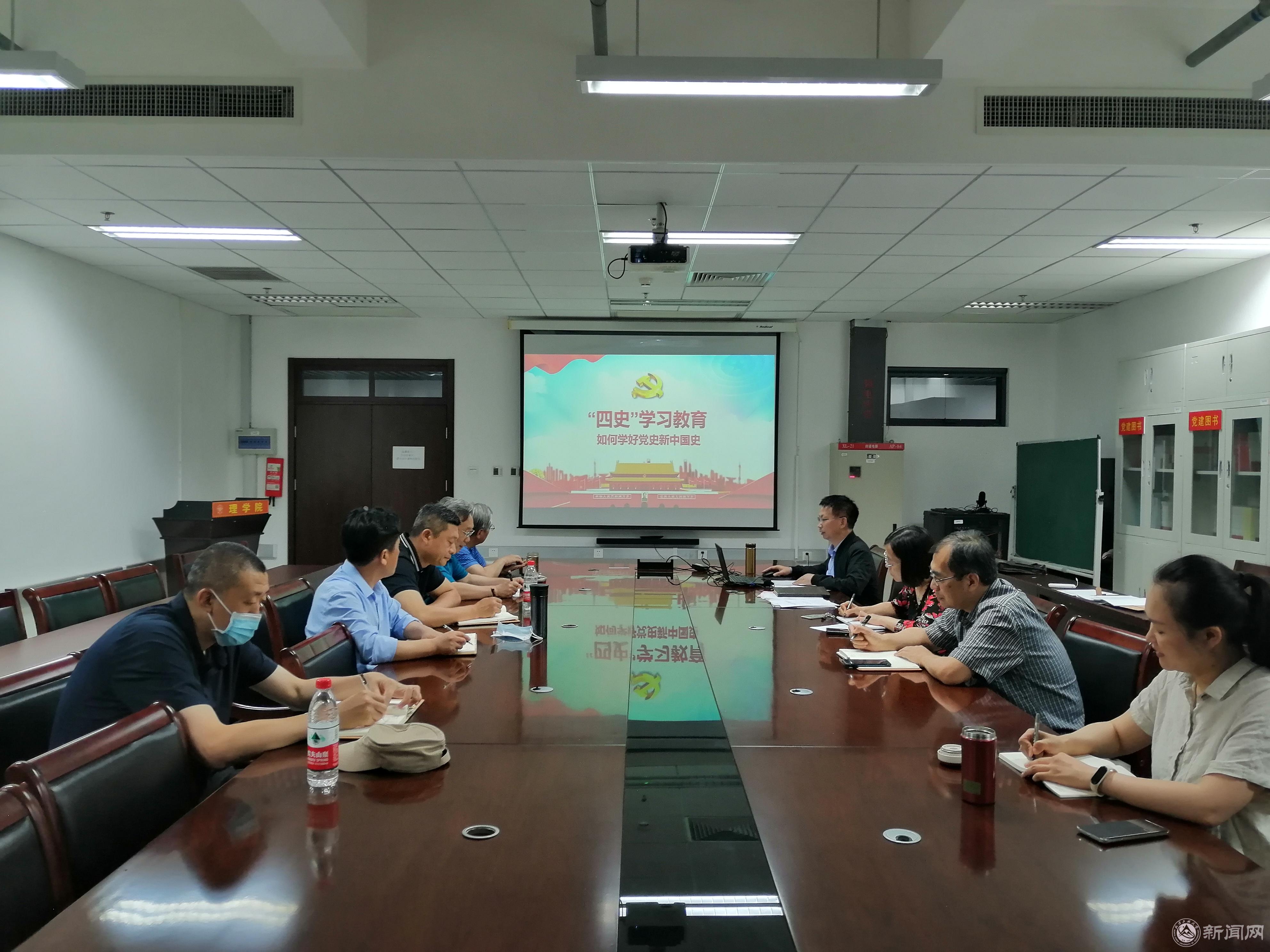 6月17日下午,理学院党委组织召开理论中心组(扩大)学习会议,学习《如何学好党史新中国史》,理学院领导班子成员、党委委员、各系主任参加了学习。