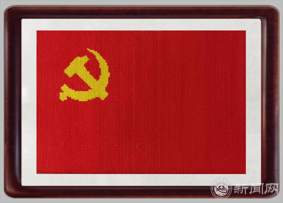 在学院分工会的组织下,学院女教工以接力同绣党旗的方式表达同心向党的美好感情。在大多数女教工没有接触过十字绣的情况下,大家共同探讨绣法、交流经验,以保证作品质量。历时三个月,大家利用业余时间共同完成了党旗的秀制,秀制过程中的每一针一线都融入了大家对祖国的美好祝愿,每一次接力传递都饱含着大家对党的无限热爱。