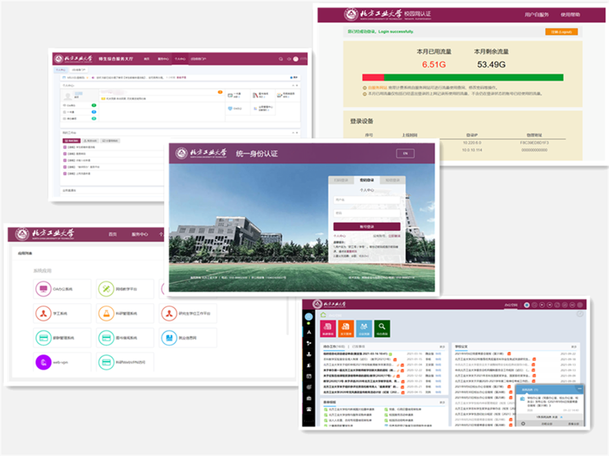 网信中心以方便师生为宗旨,统筹全校各业务部门需求,梳理和优化学校主要业务流程,融合业务与数据,推进数字资源服务云平台的建设,部署优化了校园WebVPN平台和统一身份认证平台(图1),开通了“一键建群”方便师生线上沟通,部署了“服务大厅”、“OA办公”、“网络教学平台”、“研究生成果认证”、“协作单位入校申请表”、“【课程替代】与学分认定”等业务线上办理流程(图2);积极推进网上服务大厅(图3)和企业微信(图4)等设施平台建设,应对 “停课不停学、停课不停教”,在企业微信中建设上线了“学生出校申请”、“学生2021暑假留(返)校申请表”、“接诉即办”等十多个高频、多面向的办事服务流程,进一步简化审批流程,实现在线申请(预约)、审批、查看等功能,真正落实了“让数据多跑路、师生少跑腿”的目标。