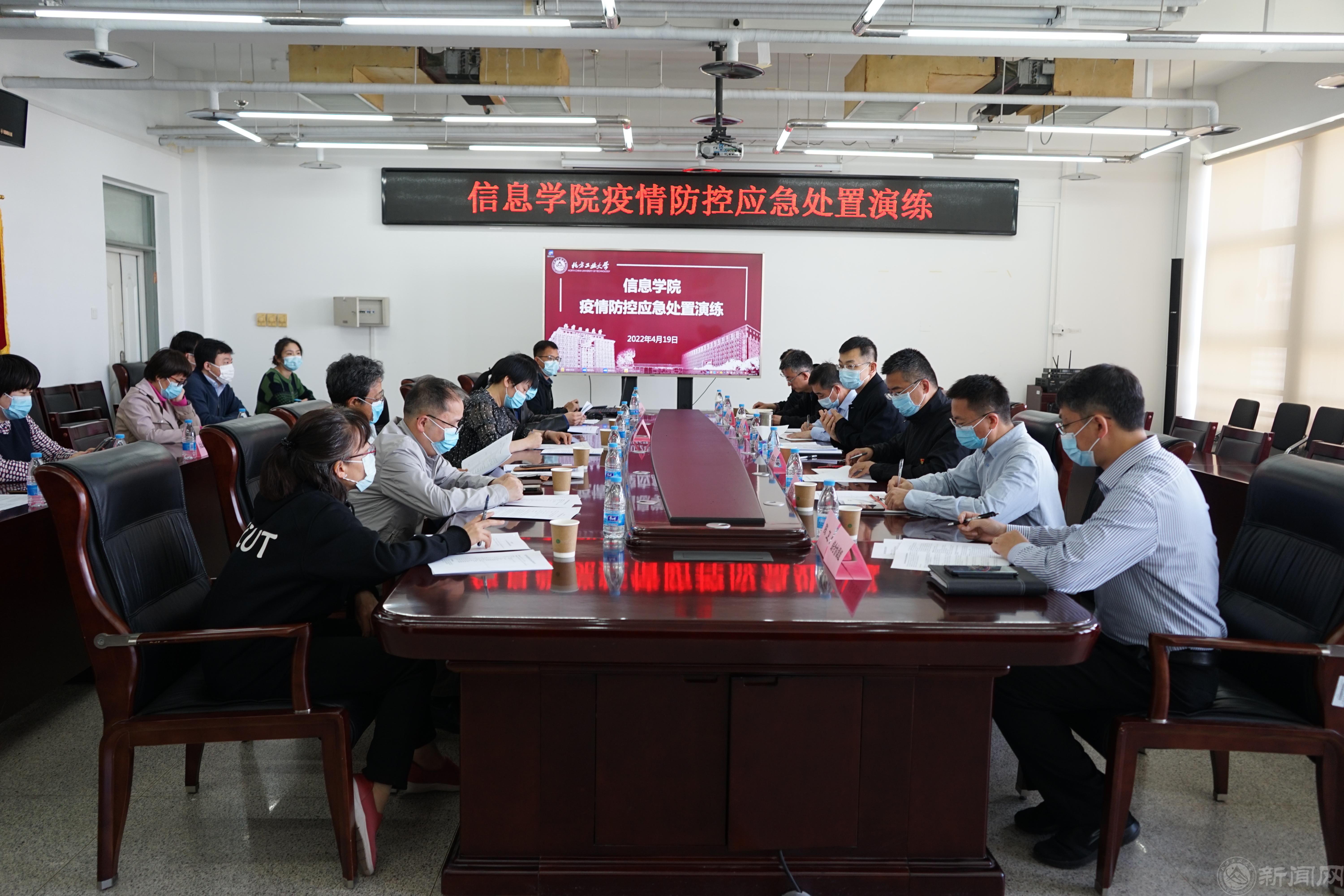 4月19日下午,信息学院开展疫情防控应急处置演练,学院党委书记王月海、院长马礼、副书记陈卫、副院长段建勇、各系主任、学工队伍、师生代表等50余人参加演练。校武装部部长、防控办副主任郑泰平、防控办干部隋俊宇莅临指导演练。