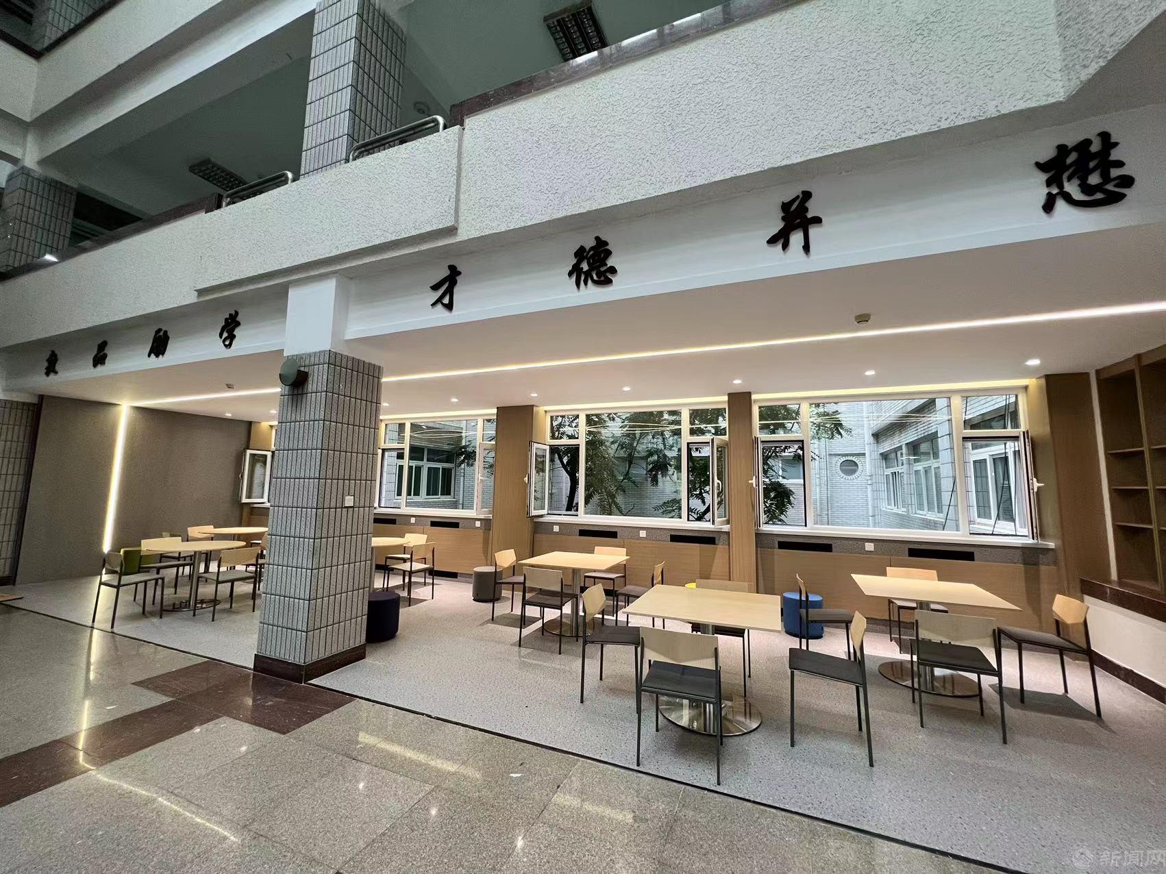 为进一步优化办学条件,美化校园环境,学校利用暑期对励学楼中厅进行升级改造。改造工程从细节上见功夫,既考虑到环境的美观度,又兼顾了师生的学习和生活需求,有效利用教学楼的闲置分散空间,为师生提供有亲和力的沉浸式自主学习环境。