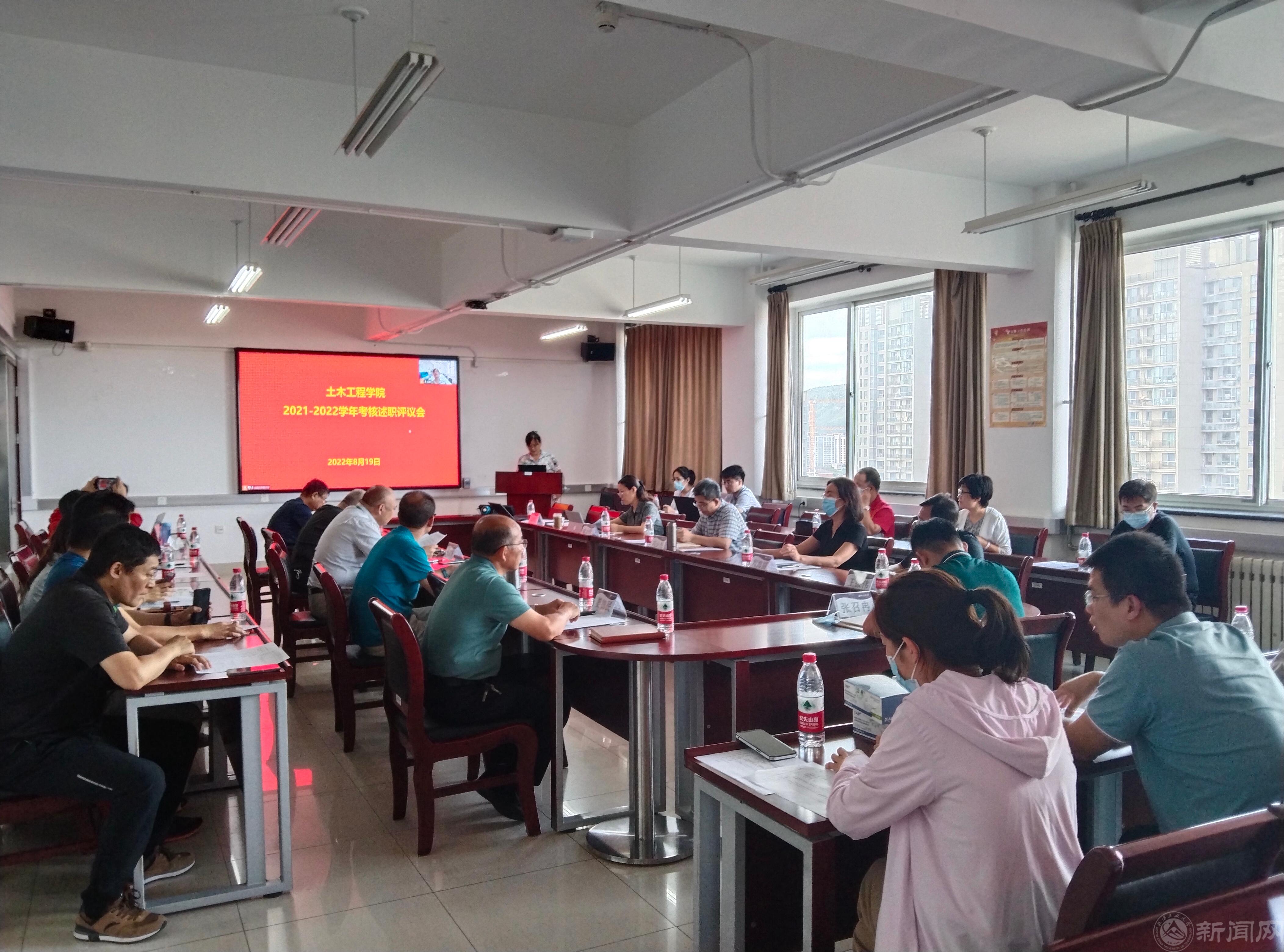 8月19日,土木工程学院通过线上线下相结合的方式,在浩学楼1113会议室召开2021-2022学年考核述职评议会,学院班子、考核组成员和全体教师参加了会议。会议由学院党委书记刘婉立主持。