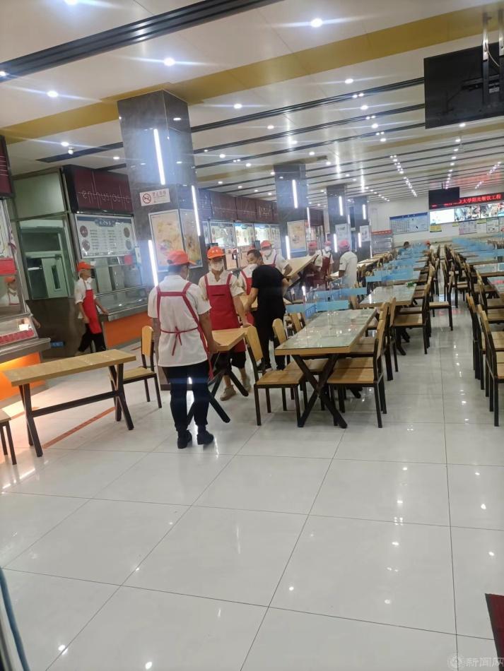 乐膳轩食堂避免同学用餐排队拥挤,撤出大厅18套桌椅。