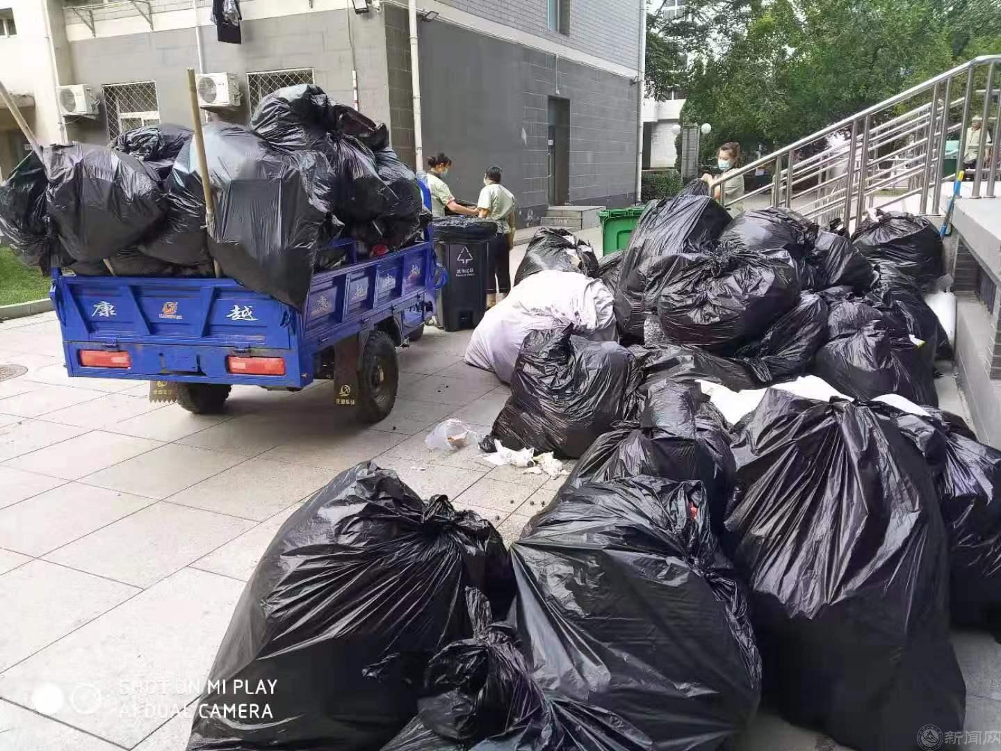 绿化环卫服务部清理高出上学期数倍增加的垃圾。