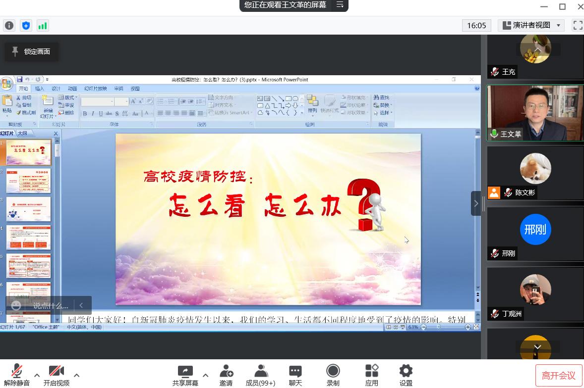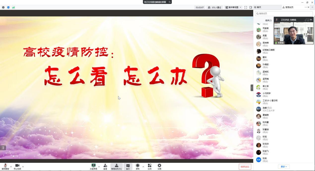 12月1日下午,机械与材料工程学院在全体学生中开展疫情防控“大思政课”。学院班子成员与全体学生通过线上学习会的方式再上疫情防控“大思政课”,结合校园疫情防控实际,为同学们分析疫情防控形势、解读疫情防控政策,深化全院学生对当前疫情防控形势的严峻性、复杂性和重要性的认识。学院1400多名本科学生、300多名研究生分五个线上会场分别参加了学习交流分享活动。