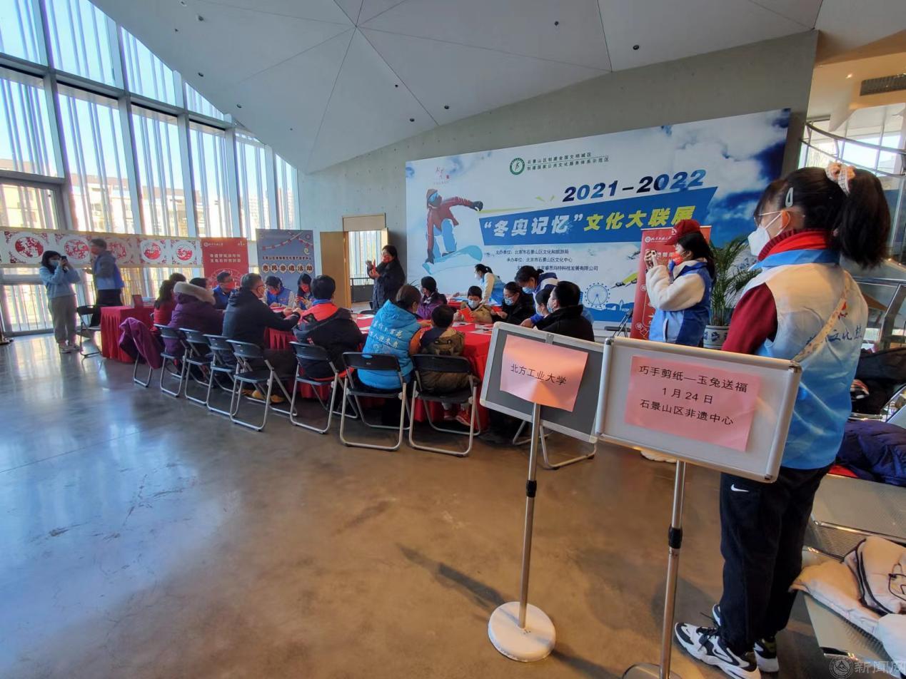活动现场,北京市石景山区剪纸第四代非遗传承人杨秀英老师讲授剪纸技巧,大学生们带领前来参观的游客体验并剪出玉兔、红灯笼等不同吉祥图案。体验环节之后,beat365官方网站的同学们还以春节期间的习俗为题,组织有奖竞答,并为作答正确的游客送上了由大学生自主设计的兔年剪纸台历和兔年剪纸口罩作为奖品。现场欢声笑语、其乐融融,小小的剪纸活动剪出了彼此的和谐友爱、剪出了浓浓的年味,为新春增添了一抹喜庆的“中国红”。