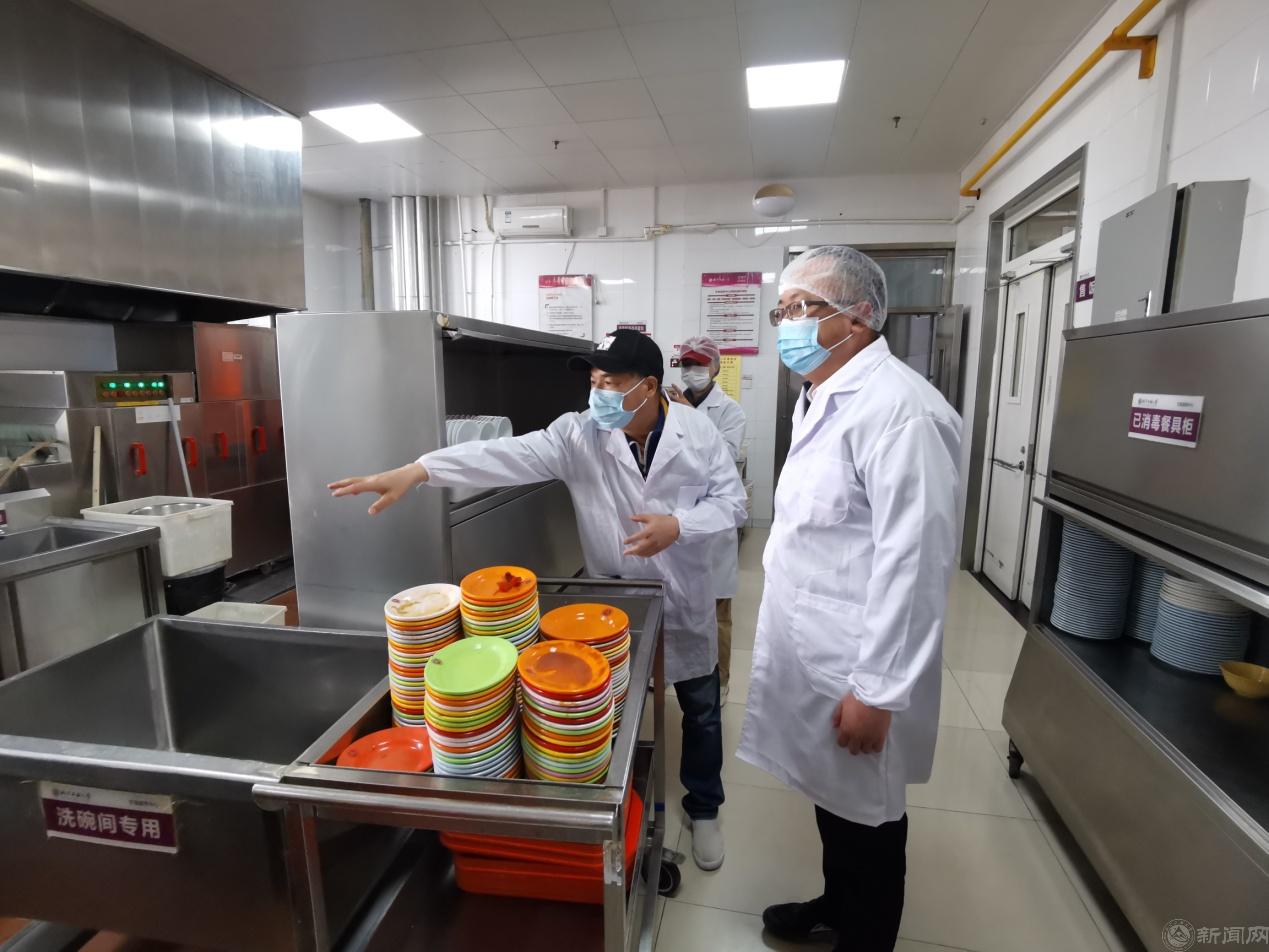 为进一步压实属地管理食品安全主体责任,确保师生饮食安全,4月7日,八角街道党工委书记崔乐带领属地食品药品监督管理局八角所所长张勇、副所长郭谦及相关负责人,来beat365对食堂食品安全工作进行检查督导。后勤党委书记郑泰平及后勤基建处负责人陪同检查。