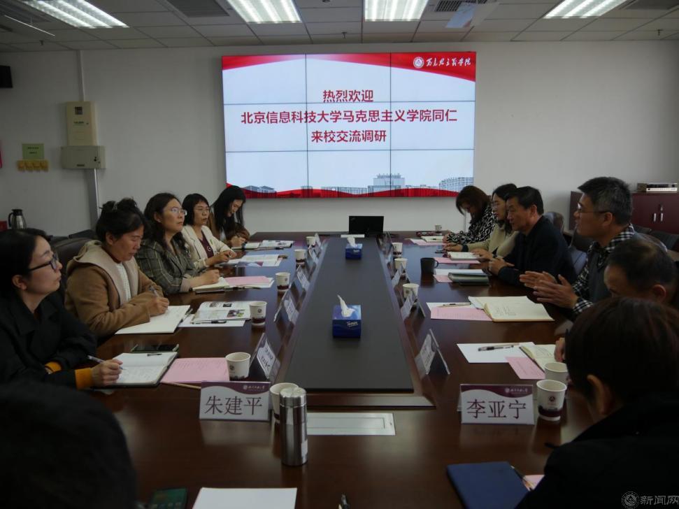 近日,北京信息科技大学马克思主义学院党总支书记郭银辉、院长赵爱玲一行6人来beat365交流调研。马克思主义学院领导班子成员、各教研室主任参加座谈,会议由院长袁本文主持。