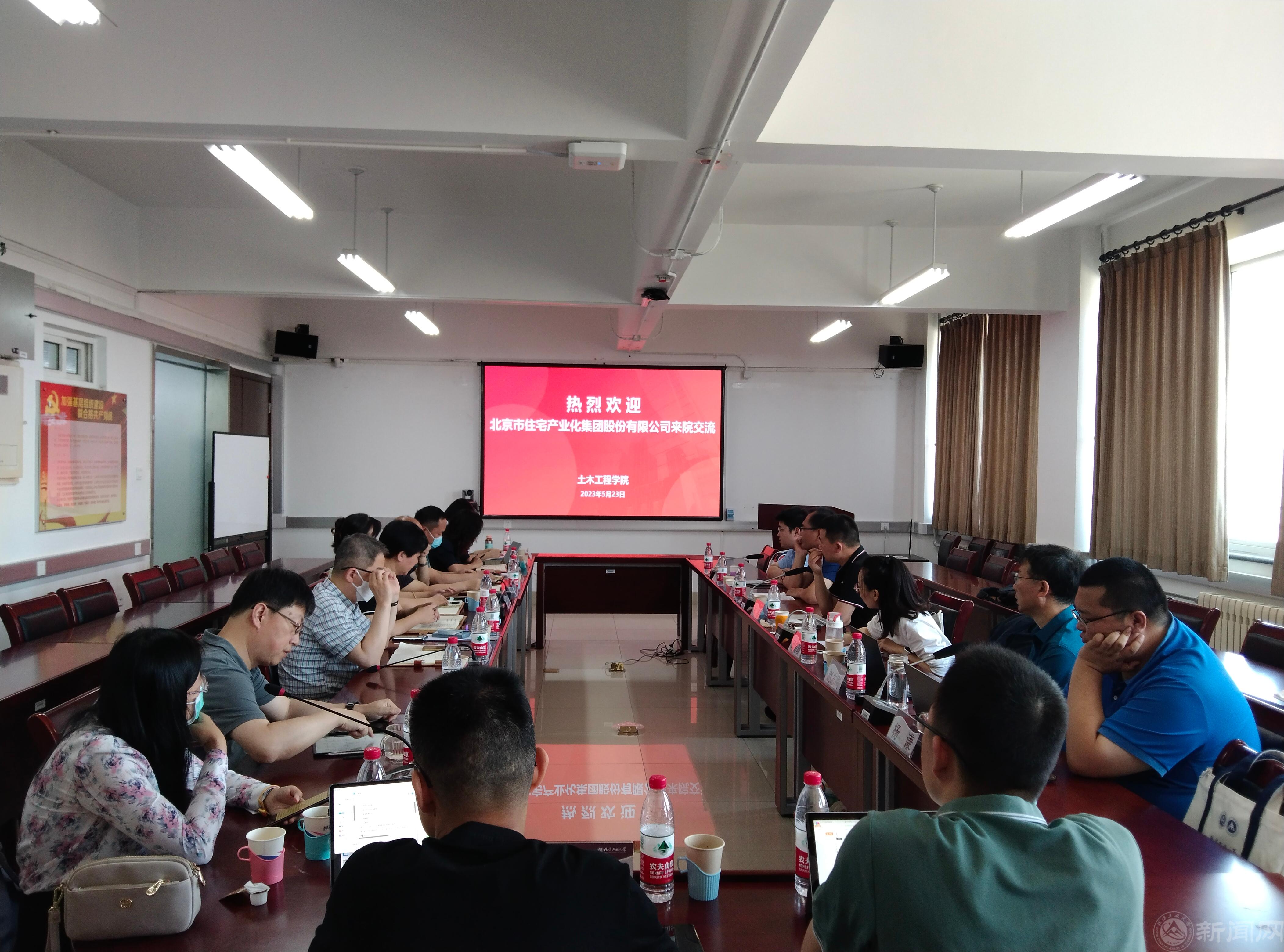 5月23日上午,北京市住宅产业化集团有限公司(以下简称住宅产业化集团)苏磊钢结构总工程师一行来到土木工程学院,就校企联合共建实践实训平台及科研合作等事项进行深入研讨。学院班子和系(中心)主任等参加了会议。会议由土木工程学院院长纪颖波主持。