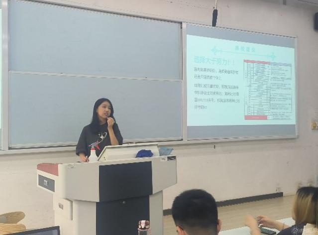 王磊表示大学生活已经过半,提醒同学们要珍惜大学在校这段宝贵时光。他介绍了学院今年的整体就业情况,结合19级学生邹明阳的推免经历、学生秦埔在考研和就业之间的艰难抉择、贯通班学生白崇昊投了80多份简历最终被国企录取的优秀事迹和励志故事,给予大家启发,引导并激励学生主动思考、做好自己的就业生涯规划。他向同学们做了考研动员,对准备考取研究生的同学给出了几点建议:一是要了解好当前考研形势,做好十足准备。二是要找准自己定位,科学选择目标。三是制定备考计划,合理规划进度。王磊勉励同学们一是要相信自己,不因绩点高而傲,不因绩点低而卑;二是无论做什么选择,都要坚守自己的初心,持之以恒;三是在奋斗的过程中要有敢吃苦的精神,可以放松但不能放纵。祝愿大家都能获得属于自己的成功。