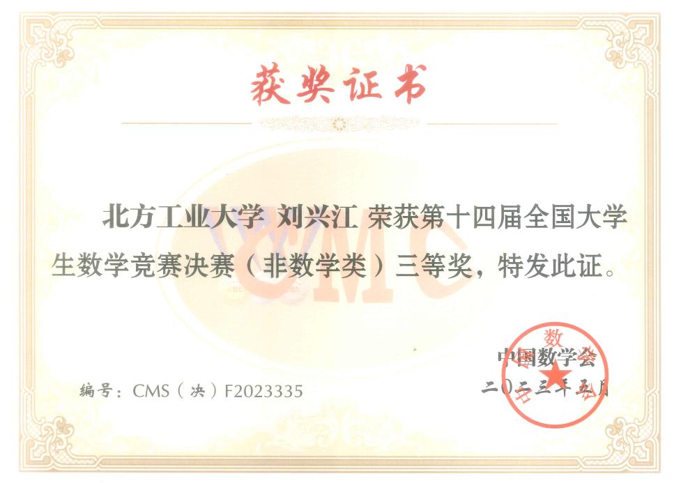 5月26日至28日,第十四届全国大学生数学竞赛决赛在广东工业大学举行。beat365电气与控制工程学院刘兴江同学作为北京赛区参赛代表之一参加了此次竞赛,并最终取得了非数学类全国三等奖的优异成绩。这是自全国大学生数学竞赛举办以来beat365学生首次入围决赛并成功获奖。